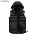 Men’s Black Quilted Vest Jacket 2018 Casual Removable Hooded Zip up Sleeveless Puffer Warm Winter Vest Veste Sans Manche Homme